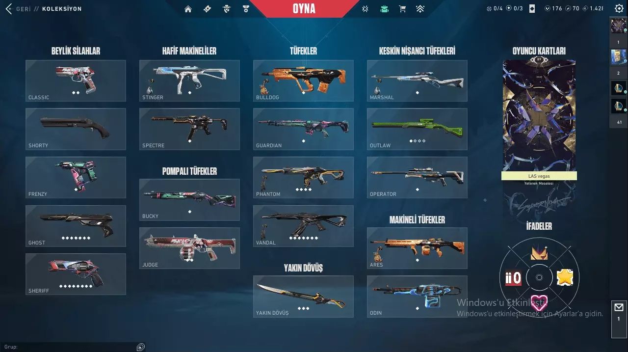 Elmas 3 bitirildi şuanda platin 2Kuronami Vandal, Kaos Vandal, Yağmacı Vandal, Asil Vandal, Ejder Ateşi Vandal, Evori Vandal, Felaketin Kalbi Vandal + 2 adet savaş bileti Vandal (Popstar ve Tork)Champıons 2024 Phantom + 3 adet savaş bileti Phantom (Nanokırılma, Uzay Geçidi, Ahenk Phantom, Kartuş Phantom)Champıons 2024 Bıçak, Rgx Bıçak + 4 adet savaş bileti bıçağı (Uzay Geçidi Bıçak, Kartuş Bıçak, Popstar Işık Çubuğu, Tork Bıçak)Rgx Sheriff + 4 adet savaş bileti sheriff (Ay Gezgini Sheriff, Canavarlar Şehri Sheriff, Kartuş Sheriff, Nanokırılma Sheriff)Evori Ghost + 5 savaş bileti (Ruh Susturucu Ghost, Mermi Kovanı Ghost, Kuyrukluyıldız Ghost, Gün Tutulması Ghost, Frekans Ghost)3 Adet Frenzy (Aykırı Frenzy, Uzay Geçidi Frenzy, Ahenk Frenzy)3 Adet Classıc (Tork Classıc, Yoonseul Classıc, Popstar Classıc)3 Adet Stınger (Gün Tutulması Stınger, Ahenk Stınger, Kartuş Stınger)İyon Spectre + 3 adet Spectre (Güntutulması Spectre, Tork Spectre, Yoonseul Spectre)3 Adet Bucky (Ay Gezgini Bucky, Aykırı Bucky, Frekasn Bucky)3 Adet Judge (Mermi Kovanı Judge, Popstar Judge, Nanokırılma Judge)4 Adet Bulldog (Aykırı Bulldog, Uzay Geçidi Bulldog, Mermi Kovanı Bulldog, Frekans Bulldog)4 Adet Guardian (Aykırı Guardian, Yoonseul Guardian, Popstar Guardian, Ay Gezgini Guardian)Ahenk MarshalRgx Outlaw + 2 Adet Outlaw (Ay Gezgini Outlaw, Kartuş Outlaw)3 Adet Operator (Tork Operator, Frekans Operator, Gün Tutulması Operator)3 Adet Ares ( Mermi Kovanı Ares, Yoonseul Ares, Uzay Geçidi Ares)Nanokırılma Odin96 Adet SpreyKar Tanesi Donatı100 Adet Kart150 vp10 rp4k kpBütün Ajanlar açıktır.Abartılmadığı Sürece Pazarlığa Açıktır.Hesap teslimatını 9:00 ile 00:00 arası yaparım eğer "şu saatte alacağım" diye söylerseniz o saatte veririm.